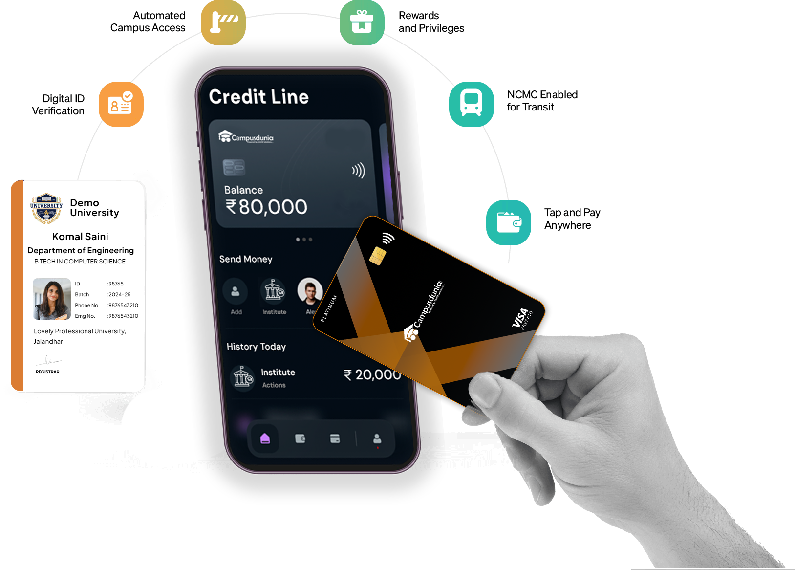 Paired with the Campusdunia app, CampusDunia keeps students in the loop with real-time transaction updates